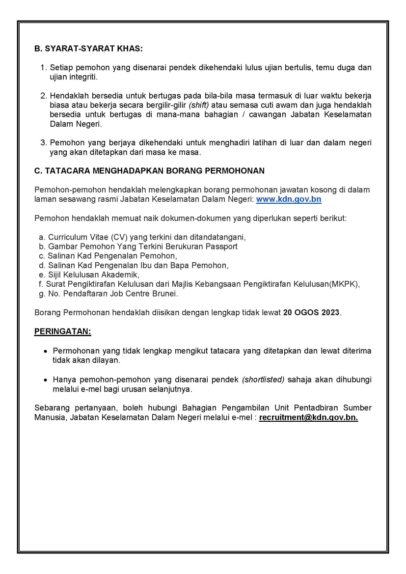 Borang Permohonan Jawatan Kosong ( Jabatan Keselamatan Dalam Negeri )